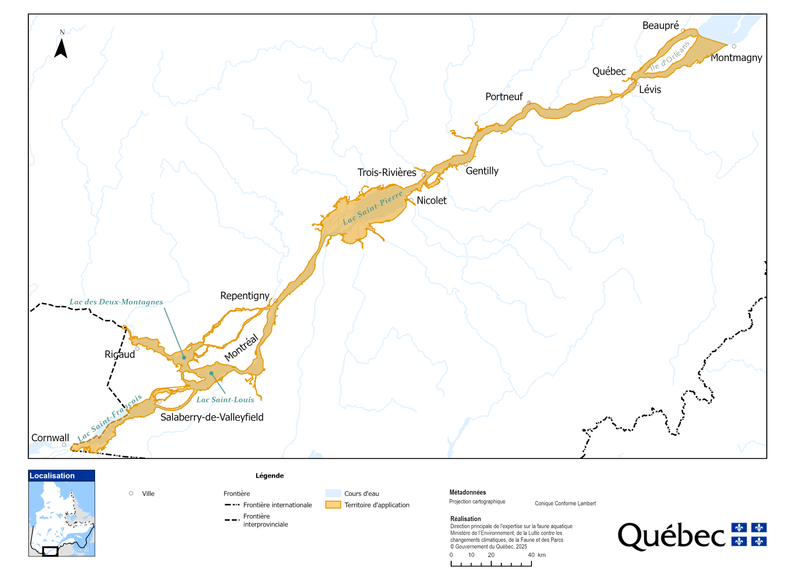 Les zones admissibles au programme incluent l’entièreté des secteurs d’eau douce du fleuve Saint-Laurent (tronçon fluvial et estuaire fluvial) et du lac des Deux-Montagnes comprenant de grands herbiers submergés. Les embouchures des grands tributaires du fleuve sont comprises, mais les projets seront priorisés selon la séquence suivante : 1) fleuve et estuaire fluvial du Saint-Laurent 2) lac des Deux-Montagnes et 3) grands tributaires du fleuve.